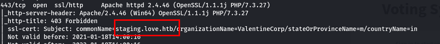 음 nmap 돌렸을 때 443 포트 쪽 눈에 띄는 주소가 하나 있었다.