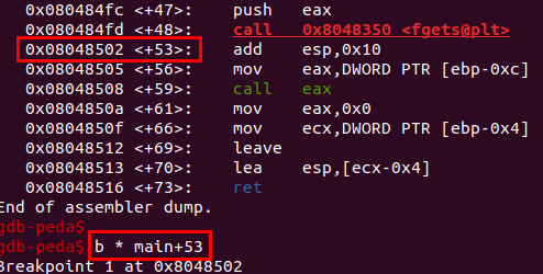 fgets가 호출된 다음 부분에 bp를 걸고 실행해보자.