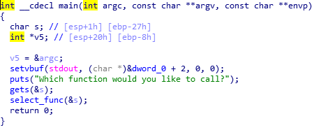 print_flag 함수가 존재한다. 이 함수와 select_func()를 활용하면 될 것 같다.