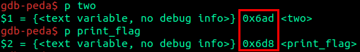 먼저, two함수의 주소와 print_flag함수의 주소를 알아보자.