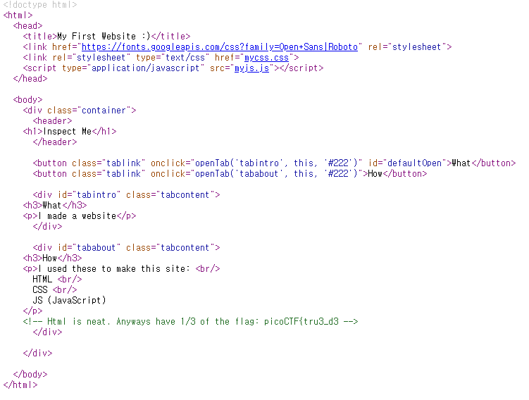 메인 페이지의 html 코드를 살펴보니 주석으로 플래그가 있지만, 완전한 플래그는 아니다.