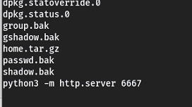Home.tar.gz 파일이 home디렉토리를 백업 해둔 것 같다. Pyhton으로 서버를 연뒤에 로컬로 가져오자.