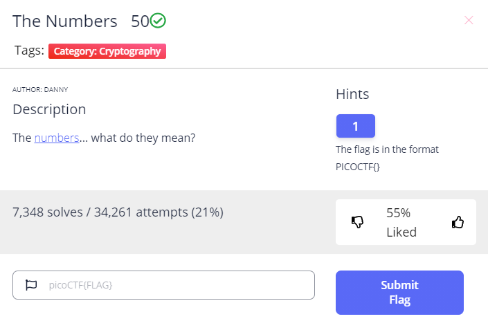 플래그는 PICOCTF{THENUMBERSMASON} 이다.