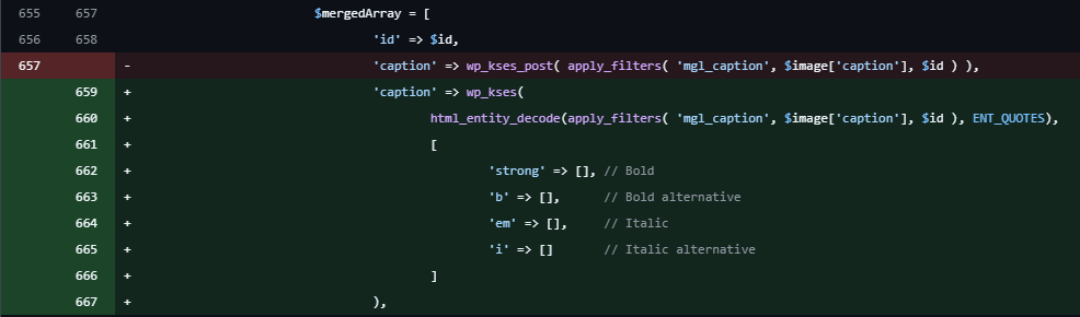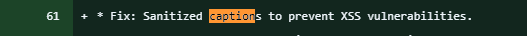 위 사진에서 보는 것 과 같이 caption 부분에서 XSS 위험성이 있는 태그나 엔티티에 대해 좀 더 sanitize 된 것을 확인할 수 있다.